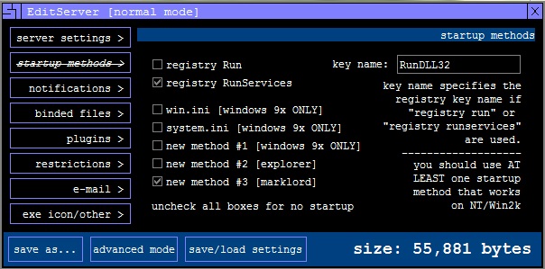 8.   melt server after installation: اين گزينه Server را بعد از جدا شدن از روي Victim محو مي كند ، در اصل شما مي توانيد با انتخاب فايل Server.exe بعد از اجرا شدن به حالت Hidden در بياوريد تا كسي از آن مطلع نشود و بصورت مخفيانه