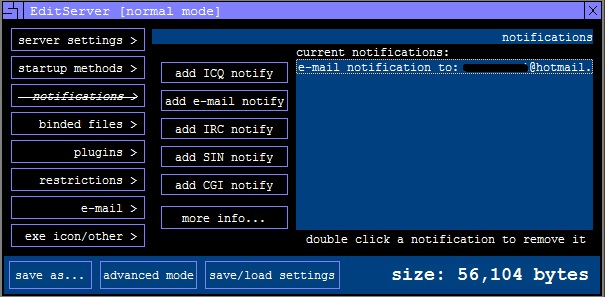 add ICQ notify: اين گزينه اطلاعاتي راجع به Server شما که شامل شماره Port و ….می